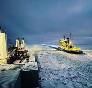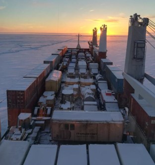 Full vessel FESCO ULISS (MPP, geared) from Xingang, China to Chukotka peninsula in Russia, ice escort at norther Sea Route leg, unloading in the port of Pevek,