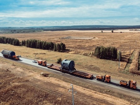 Road transportation by modular trailers from temporary storage warehouses in Almetyevsk and Nizhnekamsk to the port of Nizhnekamsk (Republic of Tatarstan);